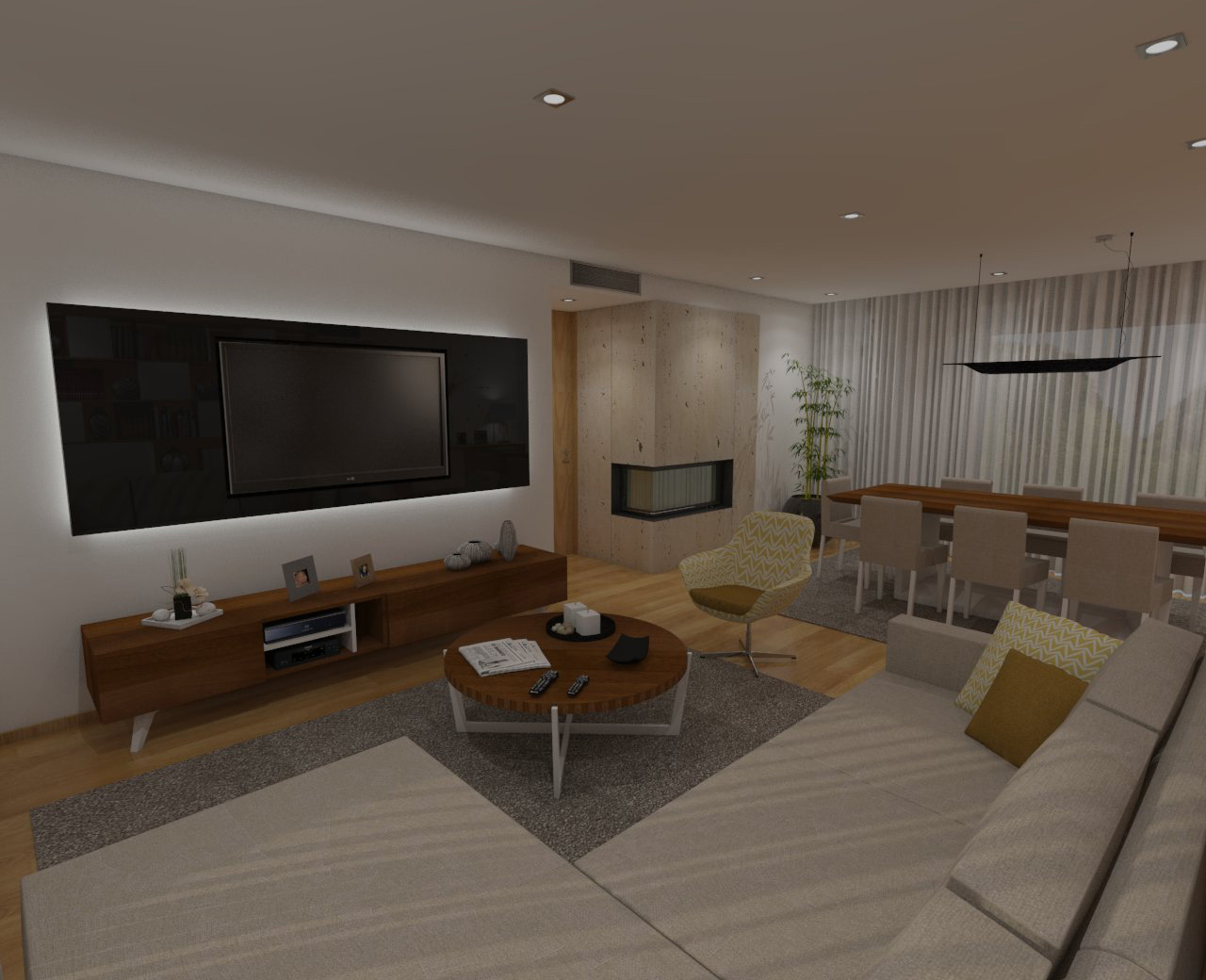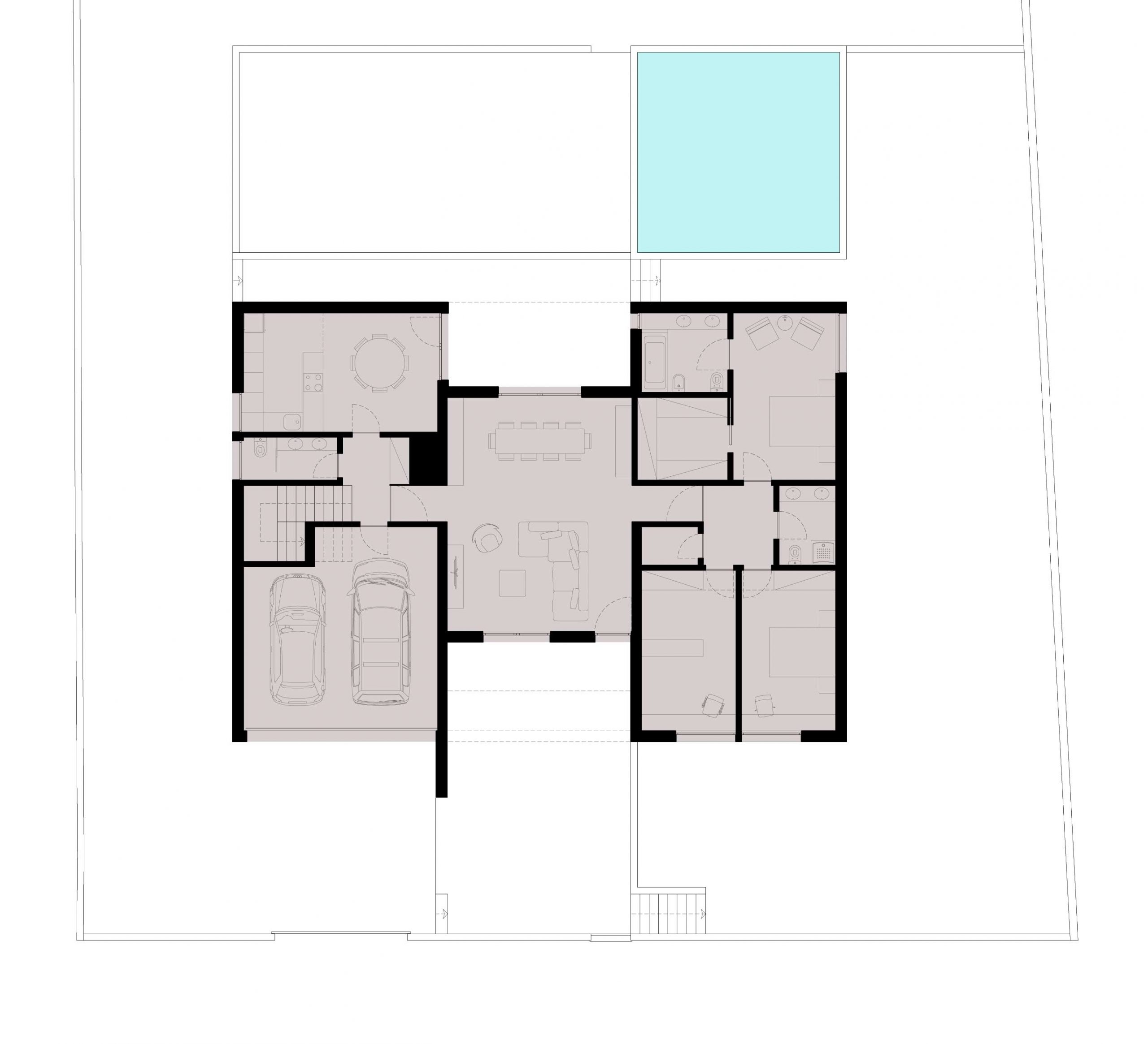 Os diferentes espaços interiores foram articulados para potenciar a relação com o exterior, assumindo a sala um papel de relevo na dinâmica interior da casa, estendendo-se entre as fachadas Norte e Sul e culminando em dois alpendres que proporcionam experiências distintas ao longo do ano. O escritório e uso da cobertura permitem o usufruto da paisagem.