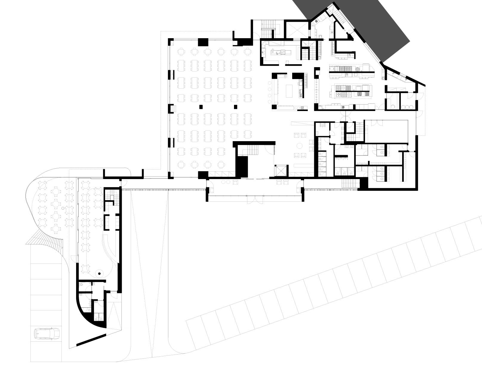 O restaurante ganhou uma nova orgânica funcional otimizada, assim como novas salas de refeições e um espaço de bebidas, que proporcionam uma enriquecedora experiência visual aos seus utilizadores, sobre o parque circundante.